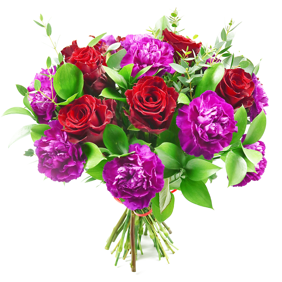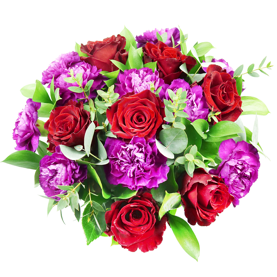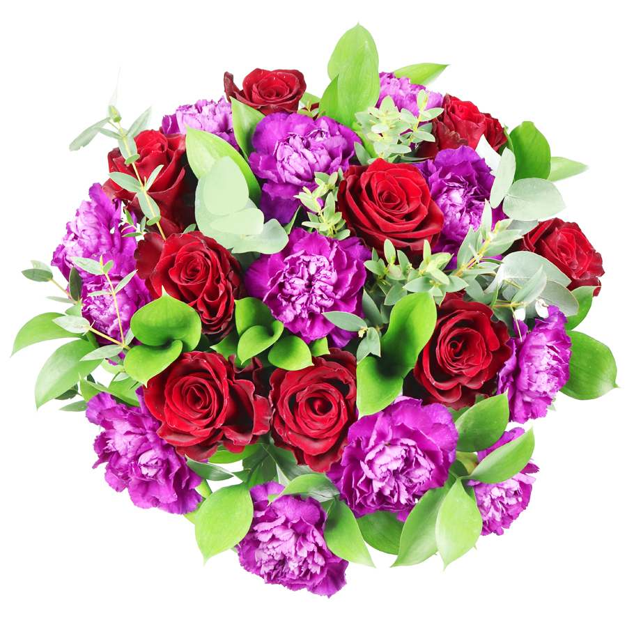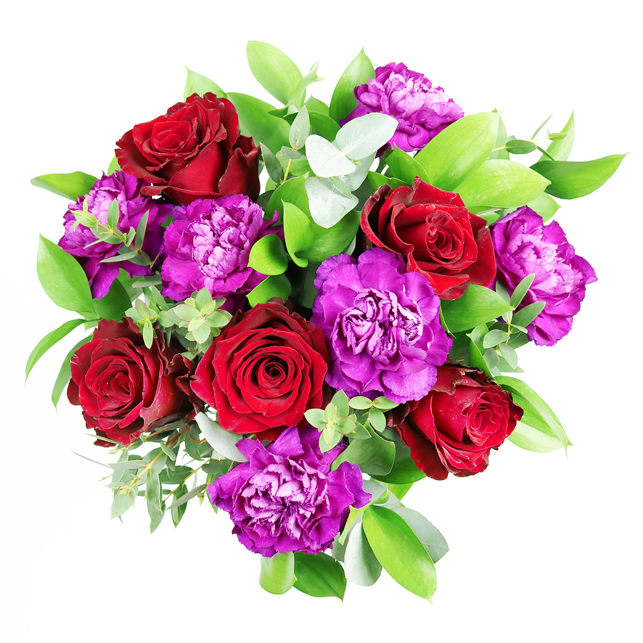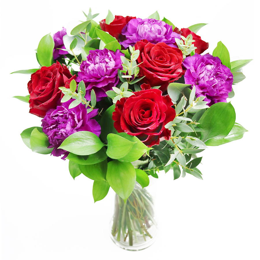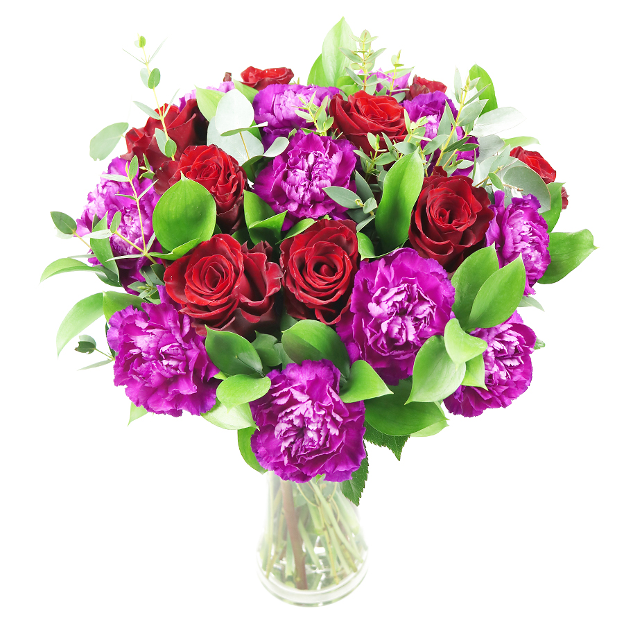 Our Classic Red Romance bouquet is the epitome of love, showcasing a beautiful arrangement of red roses, cerise carnations, lush ruscus, and aromatic eucalyptus. Each flower is carefully chosen to ensure they arrive in perfect condition.